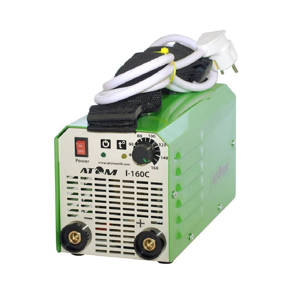 Зварювальний інвертор Атом I-160С відноситься до класу побутових пристроїв. Даний агрегат має високу продуктивність, досягаючи ККД на рівні 90%. При цьому відрізняється мобільністю і невеликою вагою.