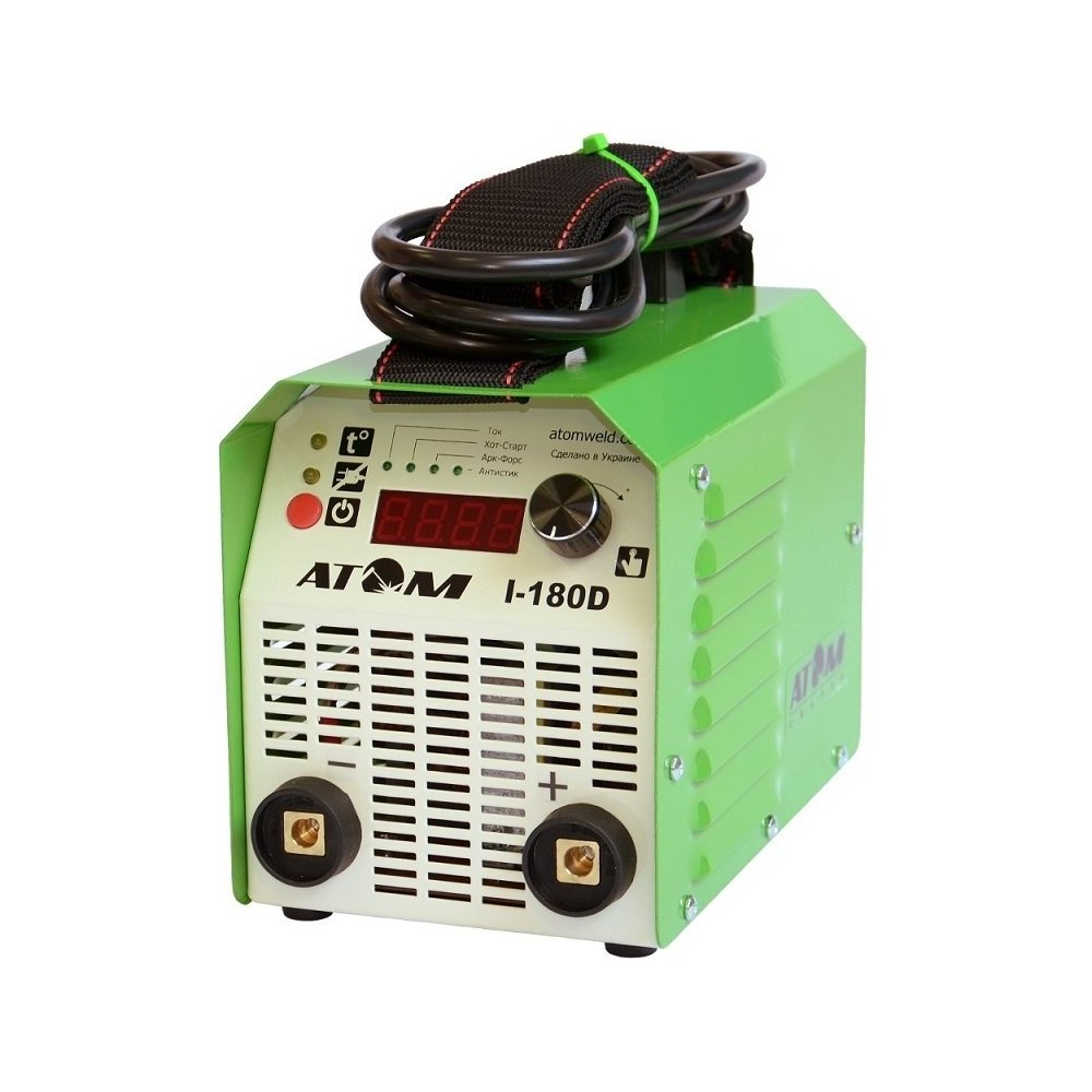 Зварювальний інвертор Атом I-180D відноситься до класу побутових пристроїв. Даний агрегат має високу продуктивність, досягаючи ККД на рівні 90%. При цьому відрізняється мобільністю і невеликою вагою.