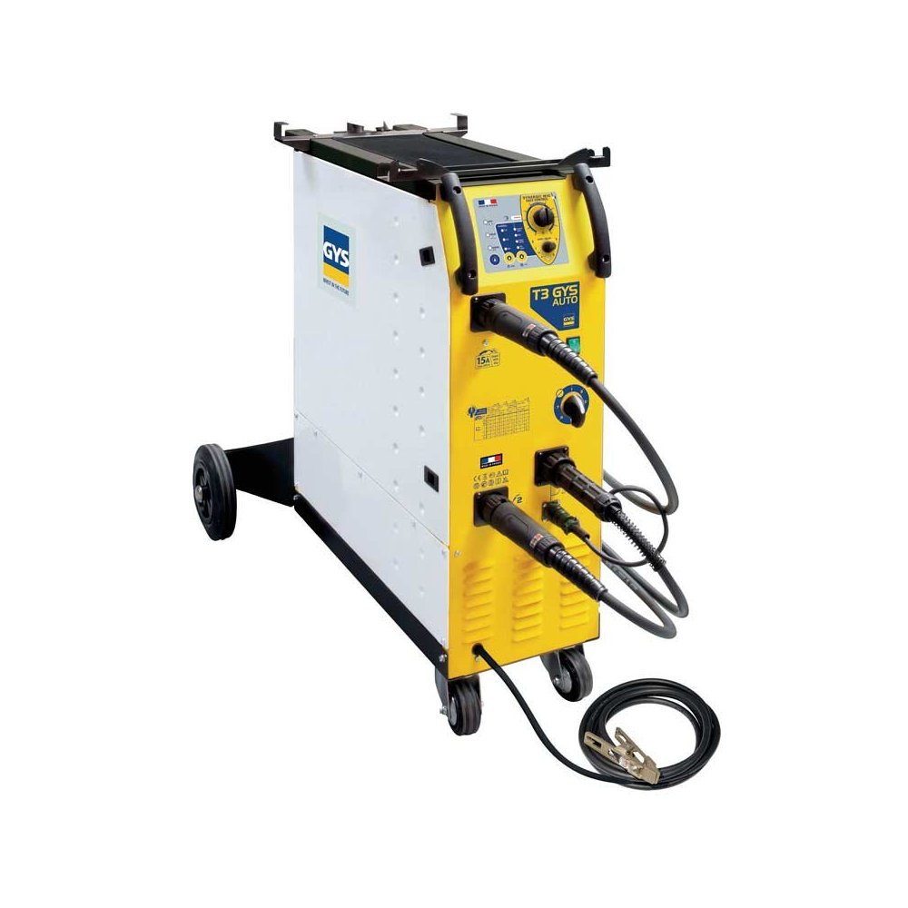 Зварювальний напівавтомат T3 GYS AUTO (032958) працює від мережі 400 V. Необхідна частота струму мережі - 50 Гц. Максимальна споживана потужність становить 4 кВт.
