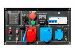 Панель управлінняПроста і інтуїтивно зрозуміла панель управління оснащена системою запалювання, перемикачем для економ-режиму. Панель укомплектована 3 розетками змінного струму (230 В 16 А, 230 В 32 А, 400 В 16 А), з індивідуальним запобіжником для кожної, виходом постійного струму 12 В, вольтметром, лічильником мотогодин. |
