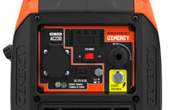 Панель управлінняПроста і інтуїтивно зрозуміла панель управління оснащена системою запалювання, ручним стартером, перемикачем для економ-режиму. Панель укомплектована 1 розеткою змінного струму 220В, 16А, з індивідуальним запобіжником та виходом постійного струму 12В. Дистанційне керування з пульта: пульт дозволяє запустити генератор з відстані до 50 м. |