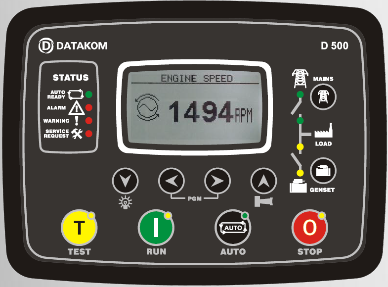 Панель управлінняБагатофункціональна панель управління дозволяє контролювати всі процеси, працездатність та параметри дизельного генератора. У випадку, якщо генератор укомплектований АВР, з панелі керування встановлюється режим запуску, ручний (старт при натисканні кнопки), автоматичний (станція запускається та глушиться автоматично без участі людини). |