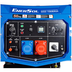 Компактная инверторная миниэлектростанция EnerSol SKD-10EBAUI - портативный прибор с микропроцессором, вырабатывающий электричество максимально высокого качества без перепадов. Работает от 4-тактового дизельного двигателя. Номинальная мощность - 9,5 кВт.